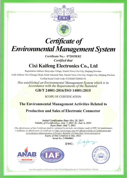 ISO 14001 certification: Manufacture conforms to the standards of environmental management system