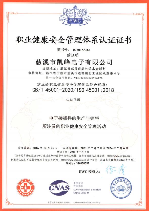 ISO45001 certification: Manufacture conforms to the standards of occupational health and safety management system