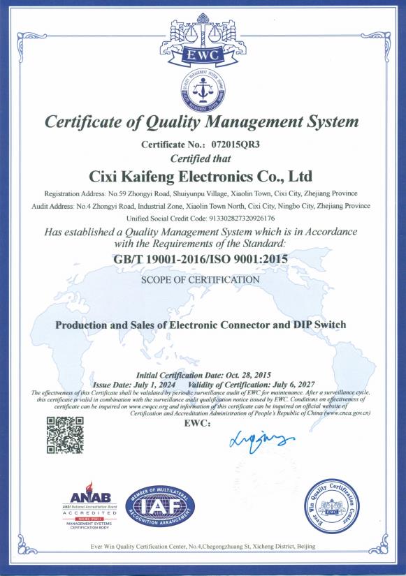 ISO 9001 certification: Manufacture conforms to the standards of 2015 quality management system
