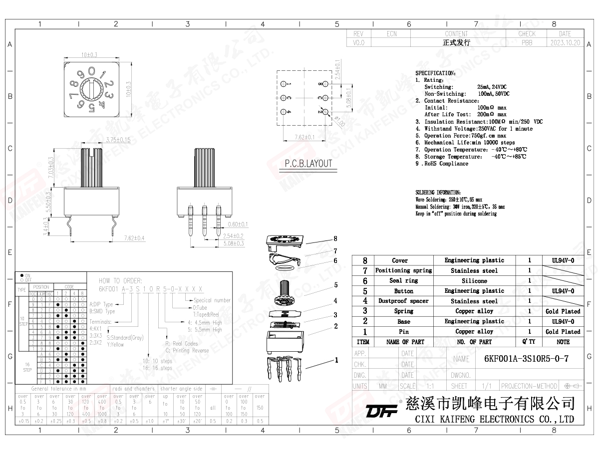 Dip Switch 6KF001A-3S10R5-0-8A