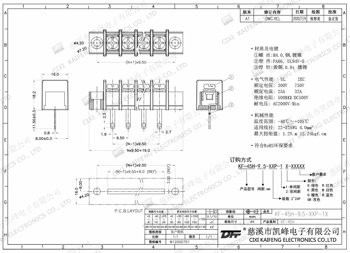 柵欄式接線端子 KF-45H-9.50mm