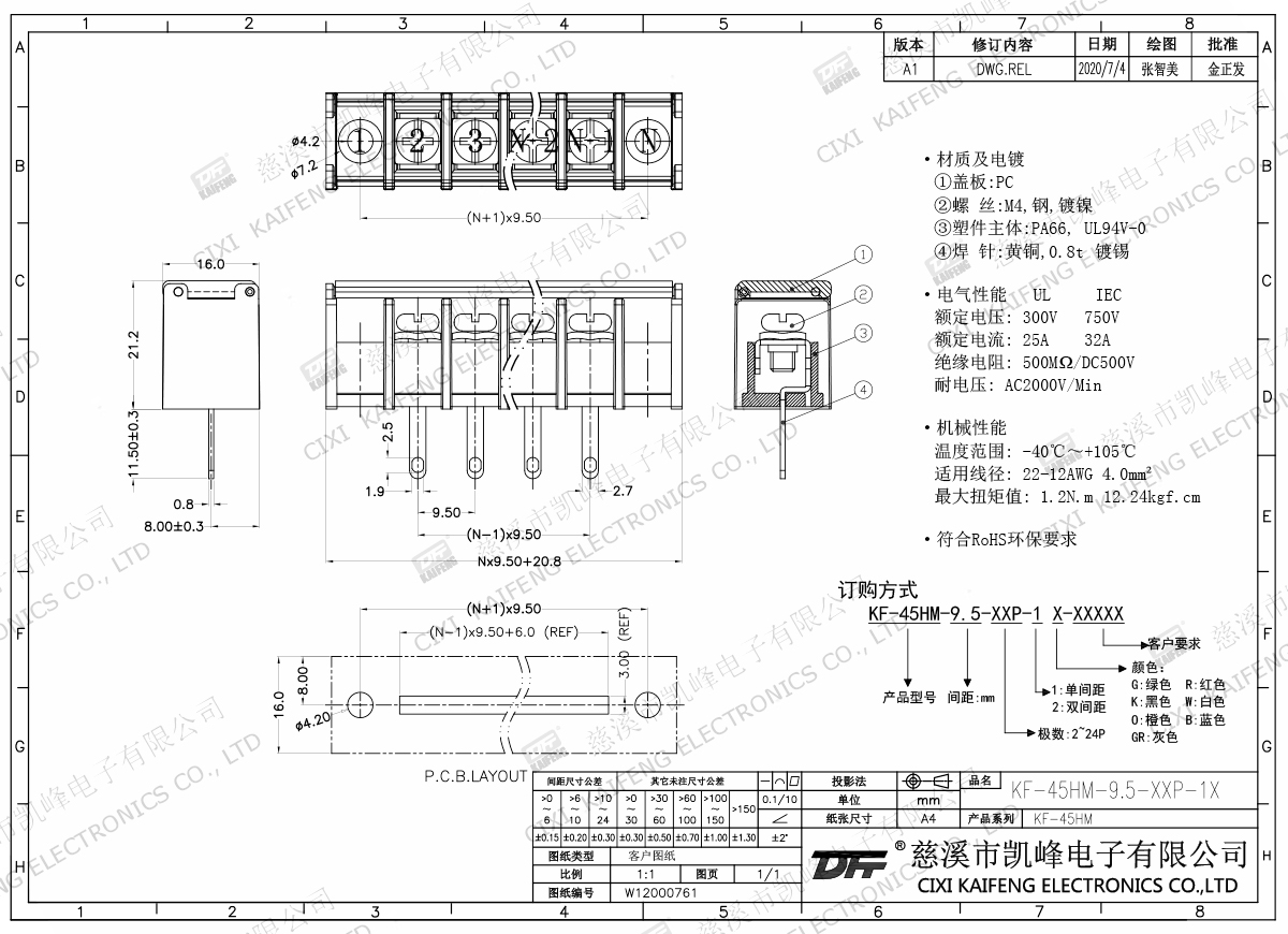 柵欄式接線端子 材質(zhì)電鍍:M4.0 鋼,鍍鎳端子:黃銅,0.8t 鍍鎳塑件: PA66,UL94V-0電氣性能ULIEC額定電壓300V 750V 額定電流25A32A絕緣電阻500MΩ/DC500V耐電壓AC2000V/1min使用線徑22-12AWG 4.0mm2機(jī)械性能溫度范圍-40℃~+105℃ 扭矩1.2N.m 10.53Lb.in