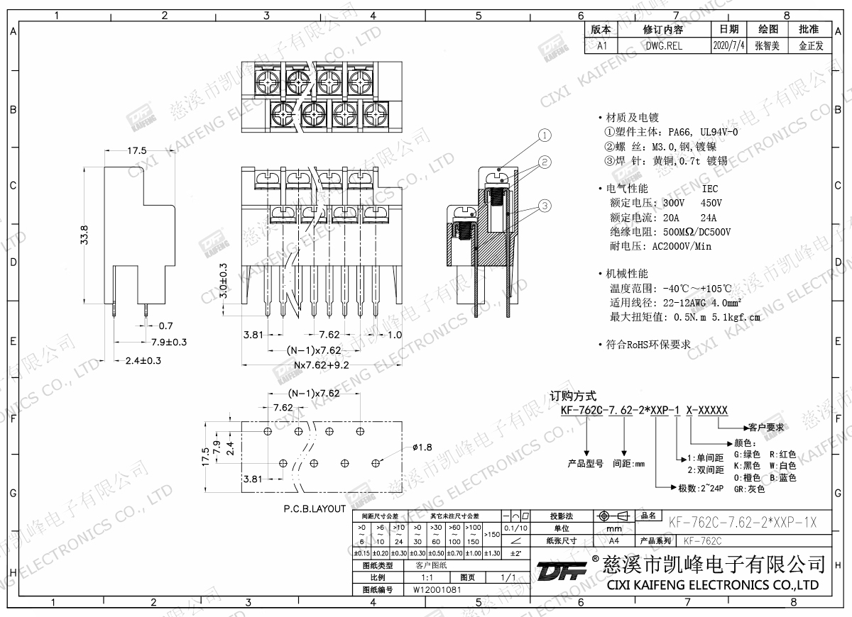 柵欄式接線端子 KF-762C-7.62mm