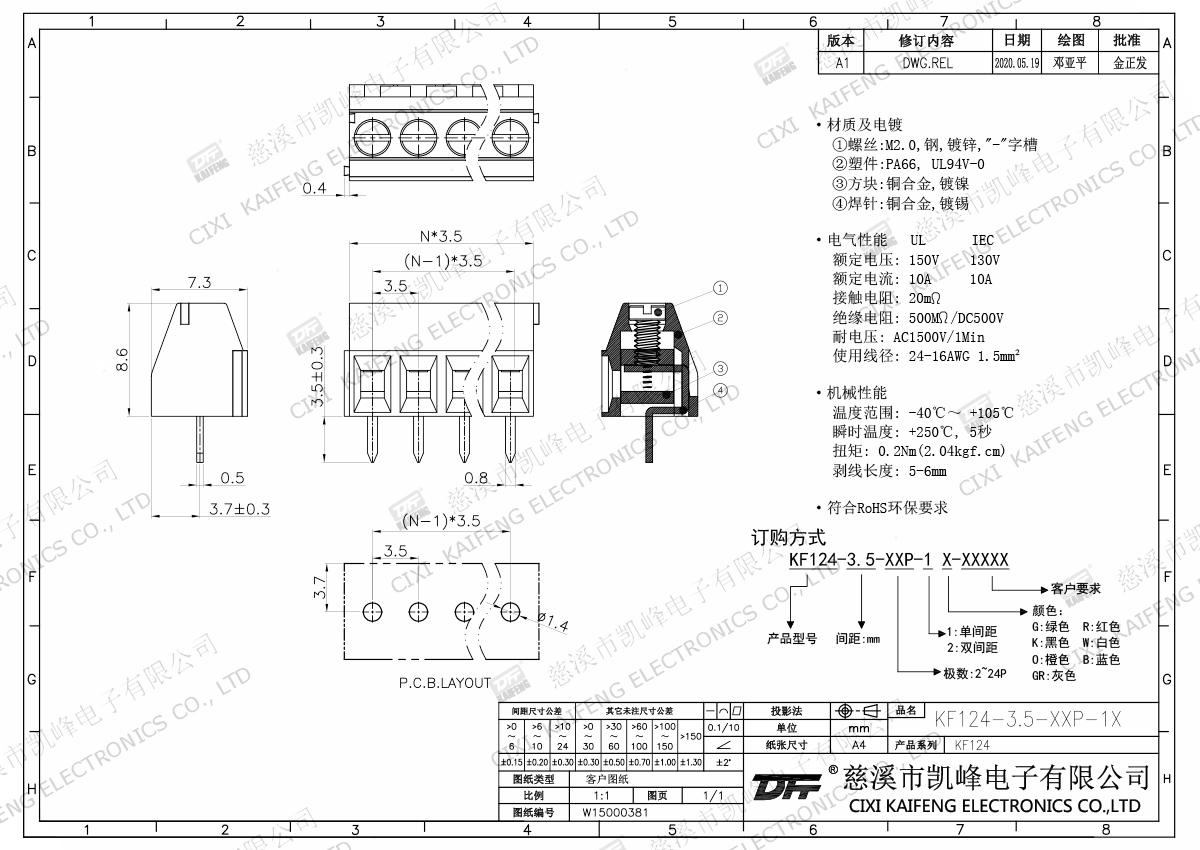固定式式連接端子 材質(zhì)電鍍:①螺 絲 : M2.0 鋼,鍍鋅,"-"字槽 ②塑 件 : PA66, UL94V-0 ③方 盒 :黃銅,鍍鎳 ④焊 針 : 黃銅, 鍍錫 &nb