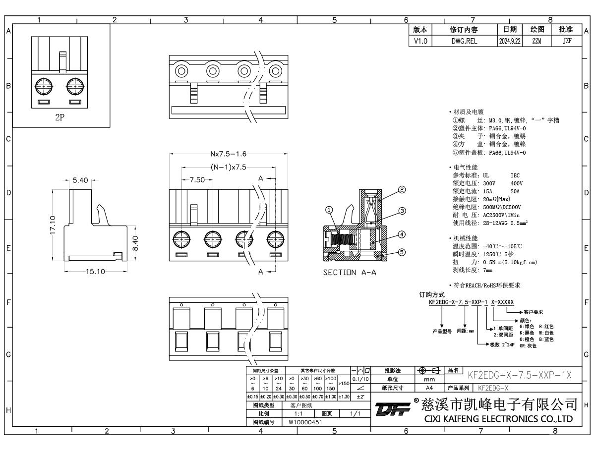 插拔式連接端子 材質(zhì)電鍍:M2.5,鋼,鍍鋅觸點(diǎn): 磷青銅焊針: -塑件: PA66,UL94V-0電氣性能ULIEC額定電壓300V 400V 額定電流15A20A接觸電阻20mΩ絕緣電阻500MΩ/DC500V耐電壓AC2500V/1min使用線徑28-12AWG 2.5mm2機(jī)械性能溫度范圍-40℃~+105℃ 瞬時(shí)溫度+250℃, 5s