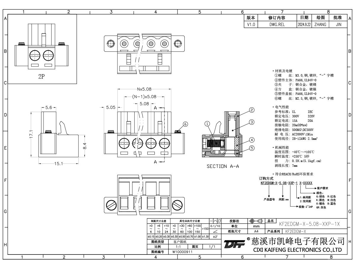 材質(zhì)電鍍:M3.0 鋼 鍍鋅 ,"一"字槽觸點(diǎn): -焊針:-塑件: PA66,UL94V-0電氣性能ULIEC額定電壓300V 320V 額定電流15A20A接觸電阻20mΩ絕緣電阻500MΩ/DC500V耐電壓AC2000V/1min使用線徑28-12AWG 2.5㎜2機(jī)械性能溫度范圍-40℃~+105℃ 瞬時(shí)溫度+